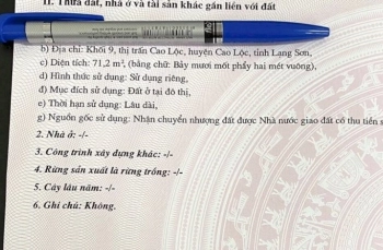 Mua Bán Đất Thị Trấn Cao Lộc, Huyện Cao Lộc, T01/2026