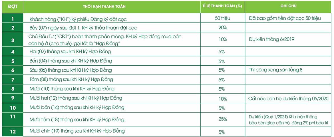 | Dự kiến bàn giao | Quý I/2021 |